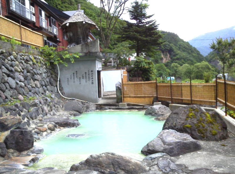 長野県北部と新潟県の県境。信濃の三大秘境のひとつ秋山郷を流れる中津川沿いに湧く屋敷温泉。屋敷温泉は切明温泉や和山温泉などと秋山温泉郷は一つに数えられる。源頼朝に敗れた平勝秀らの残党が落ち延びて、利用した平家の隠し湯とも伝えられ、また弘法の封じ湯と云い伝えられる程、歴史は古い。しかし、天明3年(1783年)の大飢饉により平家の落人達は滅亡した。湯は無色透明で、肌触りも滑らか。とにかく熱い湯だが身体に染みてよく温まる。温泉の泉質は含硫黄‐ナトリウム・カルシウム‐塩化物・硫酸塩泉 。温泉の効能は神経痛、慢性婦人病、慢性消化器病、疲労回復、切り傷など。
